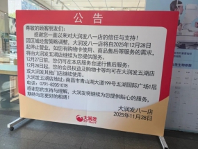 12月1日消息,大潤發八一店近日發布公告稱,因區域經營策略調整,該店將于2025年12月28日起停止營業。同時,12月27日前,顧客可...